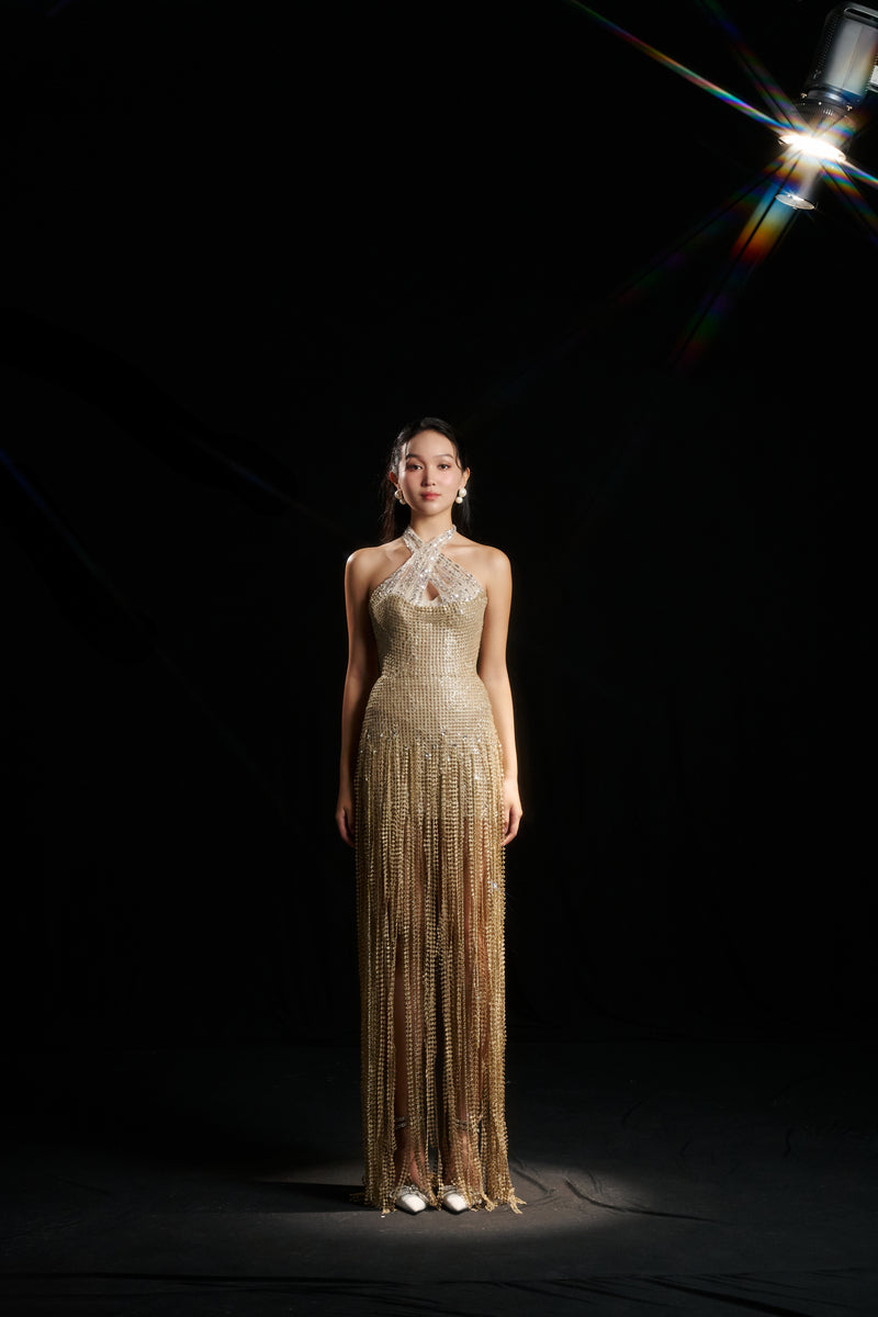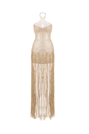 - Crystal fringe skirt detail