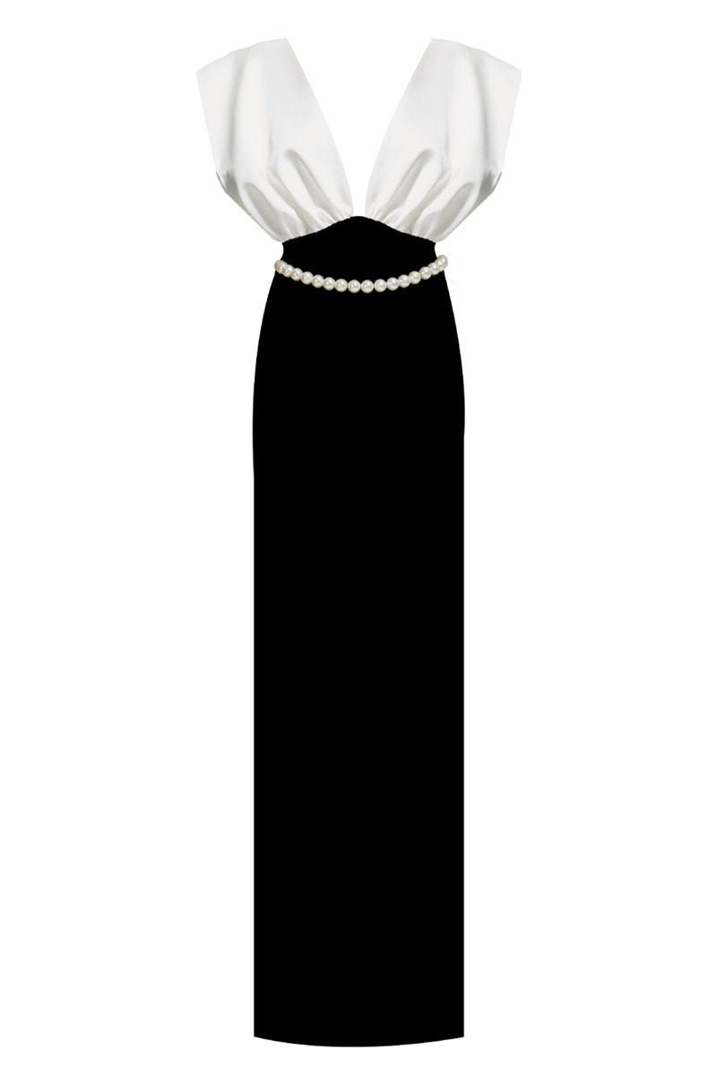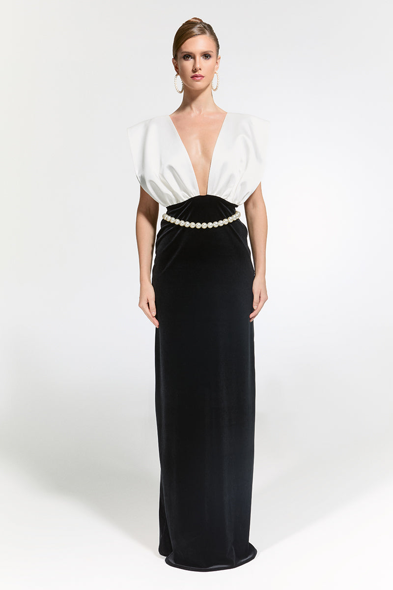 - Satin and velvet fabric long dress