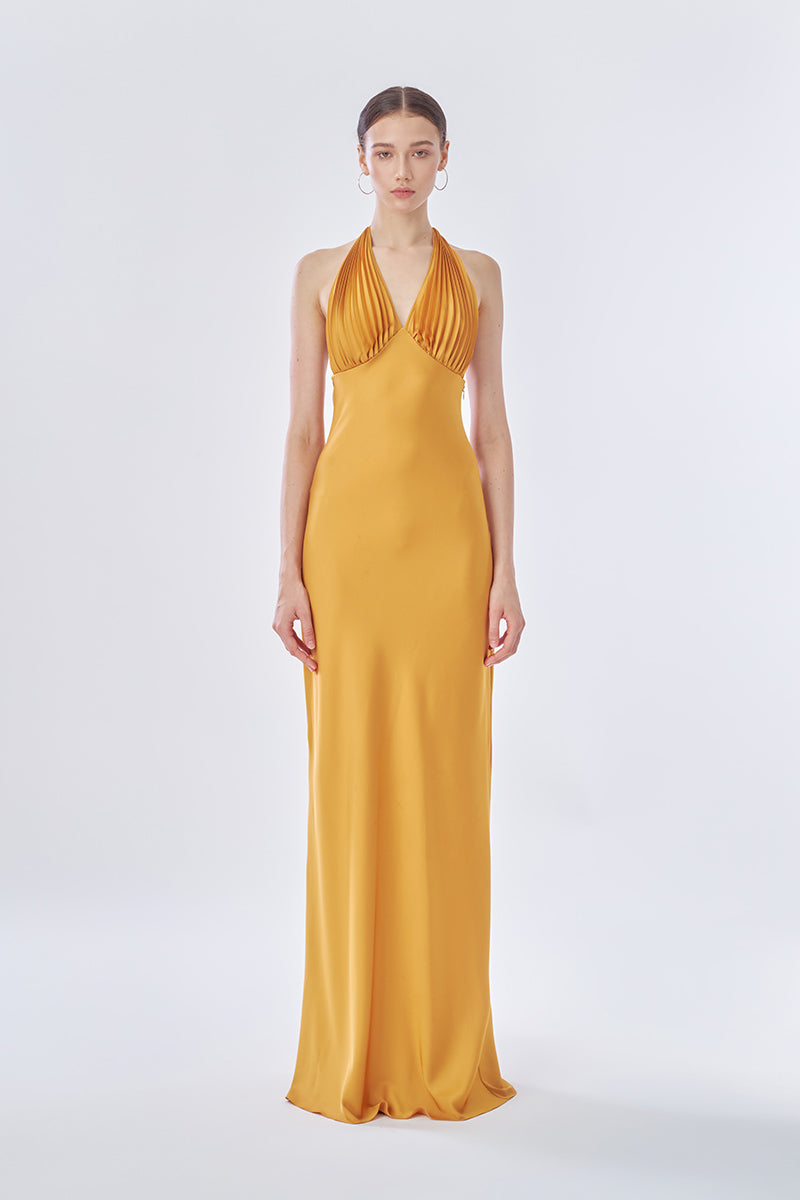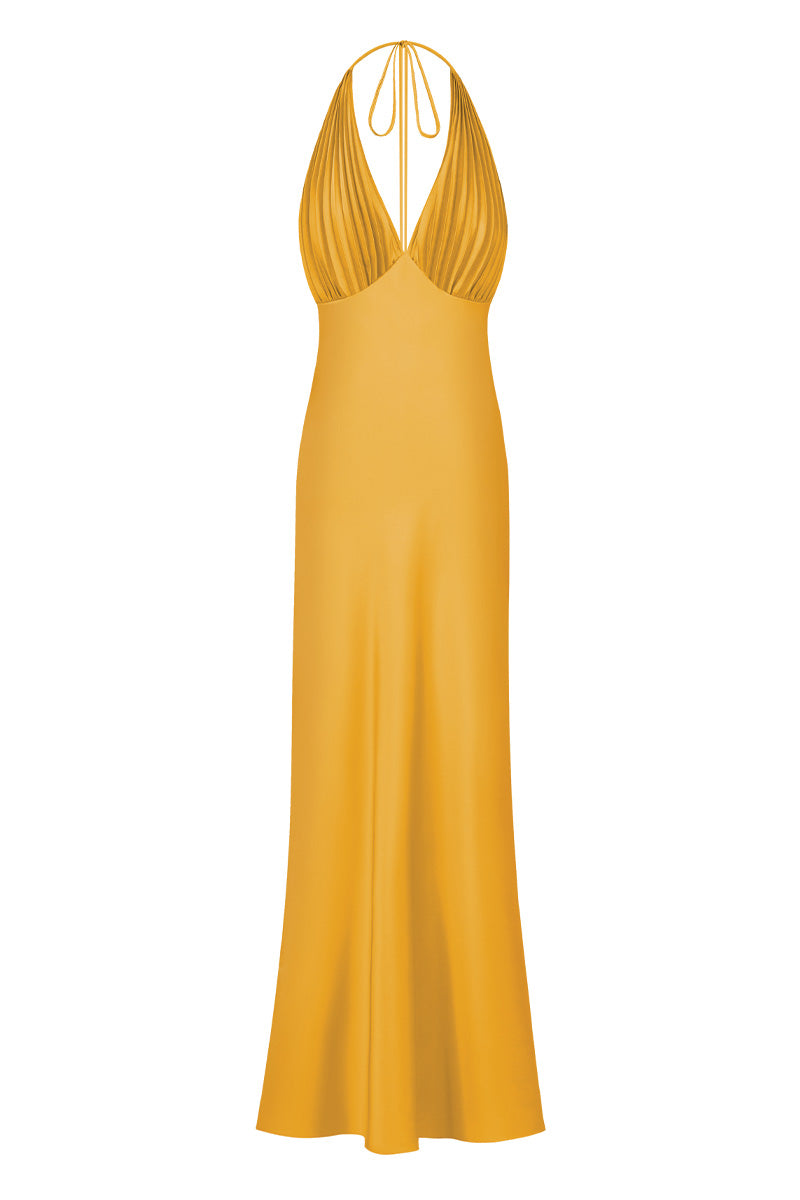 ms. pleat maxi dress in yellow mustard