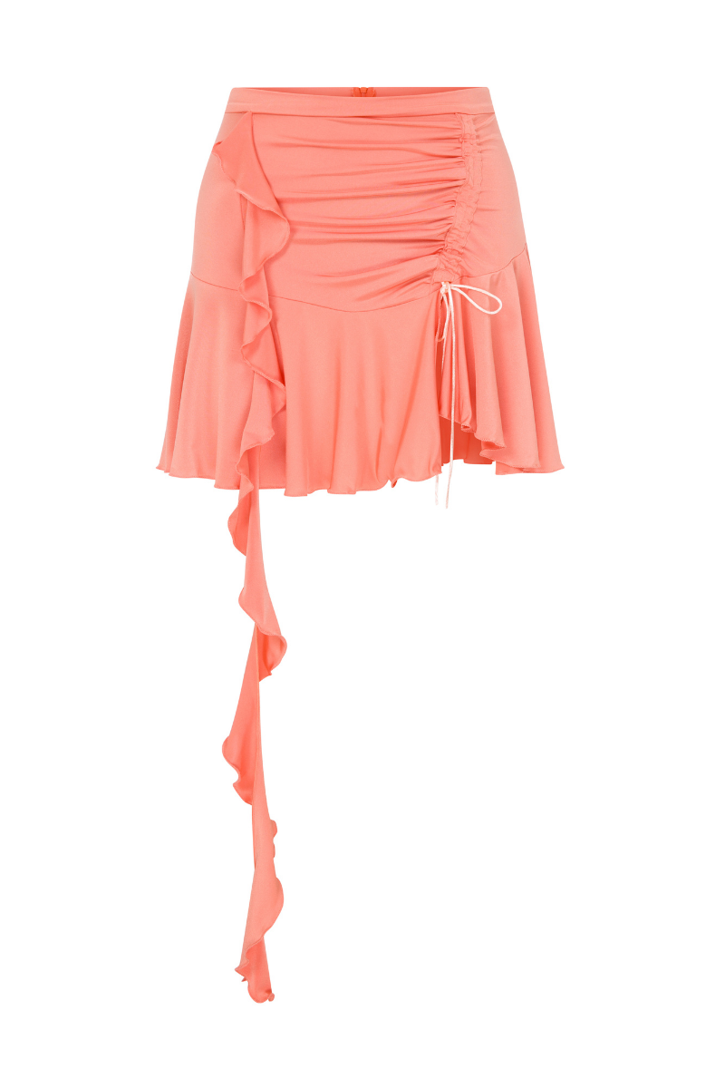 jersey mini skirt with ruffles in peach orange