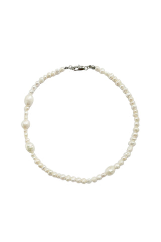 Introducing our Crusie Cultured Pearl Necklace, hand strung in our Aethera Atelier in Melbourne Australia. Each pearl is hand-selected for its unique shape and lustrous glow, creating a deliberately irregular silhouette that defies convention while exuding effortless sophistication. Mismatched in size and form, the pearls are strung on a delicate chain, resulting in an organic, free-flowing design that feels both contemporary and timeless—perfect for those who appreciate jewelry that makes a subtle yet distinctive statement. Whether layered with longer chains or worn solo, this piece adds a fresh twist to classic pearl styling, pairing equally well with crisp tailoring and casual denim. Crafted for the discerning eye, it invites you to embrace the unexpected and let your personal style shine