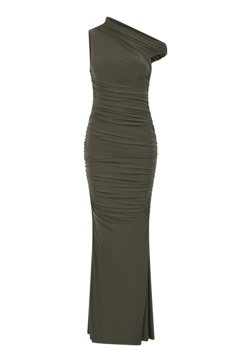 The Dahlia Maxi Dress is our standout piece of the season, with our signature ruching details and the addition of a beautiful asymmetric off-the-shoulder neckline. This piece is the perfect mix of modern and classic. Constructed in locally sourced, premium stretch drape jersey for your go-to statement piece.