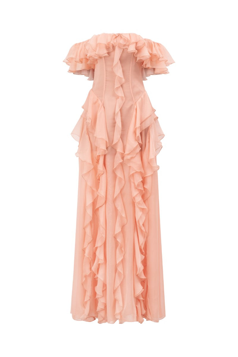 elisabeth peach fuzz silk ruffles dress