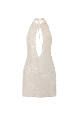 hand-crochet sequin embellished cut-out detail mini dress in white