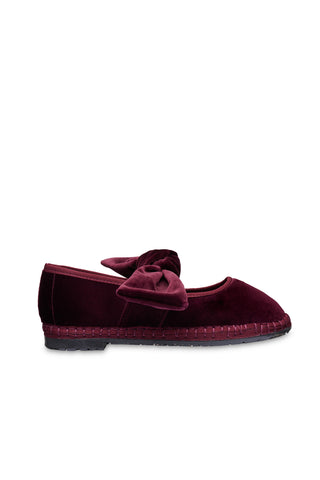 - Velvet slipper in dark red.