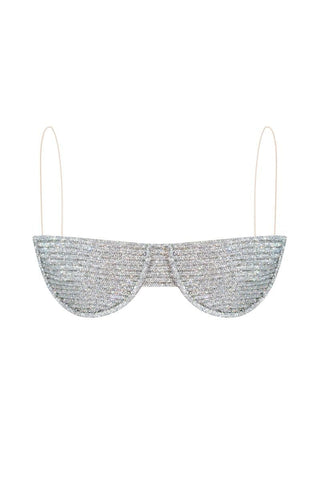 A balconette bra cut in signature rhinestone cords, nude spaghetti straps, and an elasticated nude base. Lining at the front - 100% silk. Secures with a back clasp.