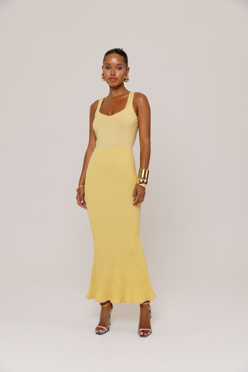 Entrez dans le soleil et scintillez avec la robe en maille métallisée jaune beurre. Cette robe ludique allie une maille douce comme du beurre à une finition métallisée scintillante, sublimant chacun de vos mouvements. Que vous virevoltiez au brunch ou que vous illuminaissiez la soirée, sa teinte jaune vif et sa coupe confortable vous permettront de vous amuser toute la journée. Illuminez votre garde-robe avec une robe aussi joyeuse et dynamique que vous !