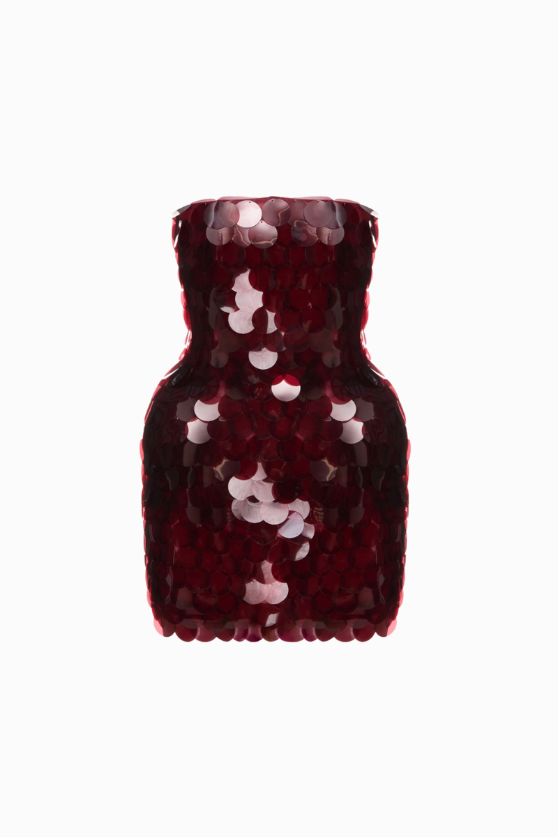 Une mini-robe audacieuse à la coupe ajustée et entièrement recouverte de sequins. Conçue pour se faire remarquer tout en conservant des lignes épurées et modernes.