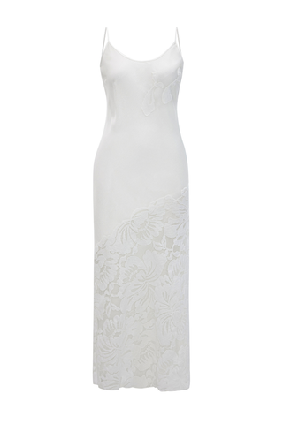 chemise de nuit longue en rayonne avec dentelle blanc cassé elia
