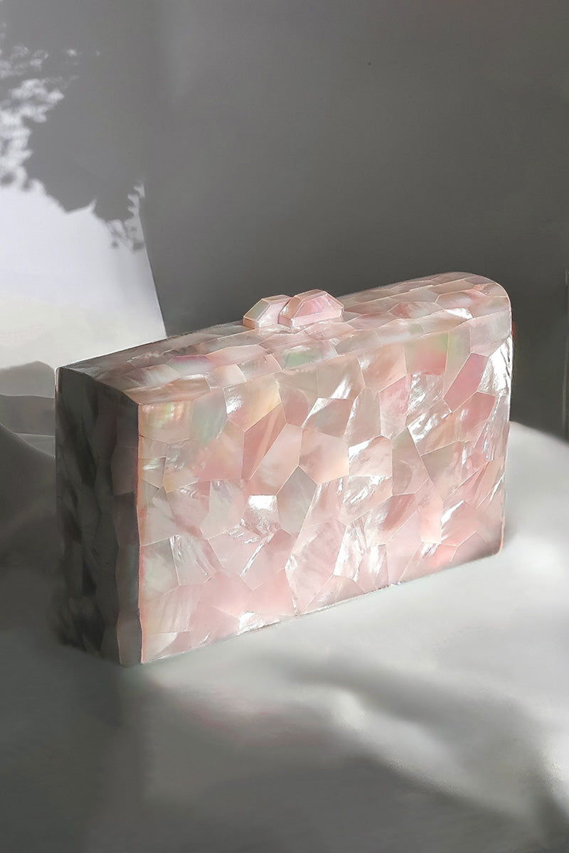 La pochette Freya Rose Aphrodite en nacre rose est la pochette de créateur par excellence pour les occasions spéciales. Confectionnée à la main avec de la nacre de la plus haute qualité, sertie d'une magnifique résine rose et doublée d'un somptueux velours noir, cette pochette contemporaine et sculptée est une pièce maîtresse, conçue pour votre mariage et au-delà. Chaque pochette Freya Rose est soigneusement incrustée à la main de notre nacre signature, offrant une touche unique et féminine en toute occasion. Portez-la par sa fine bandoulière chaîne champagne ou tenez-la comme une élégante pochette.