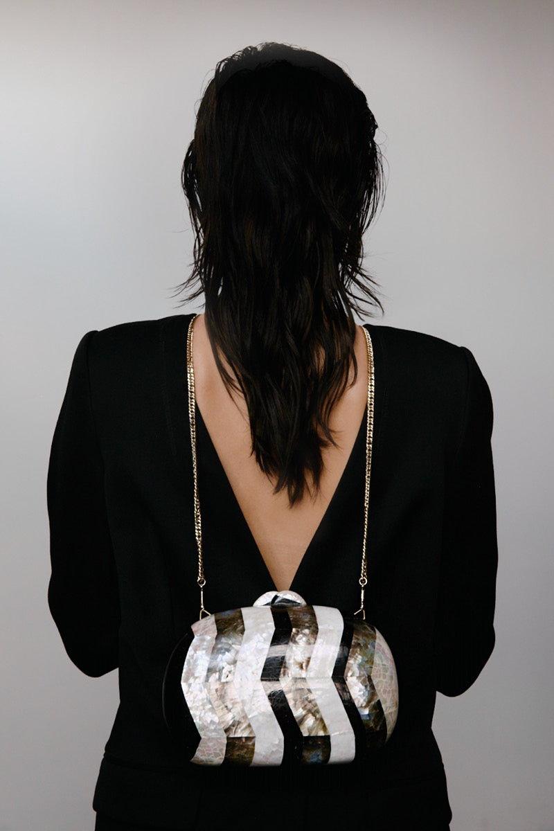 - Pièces en nacre sculptées à la main avec une luxueuse doublure en velours noir.