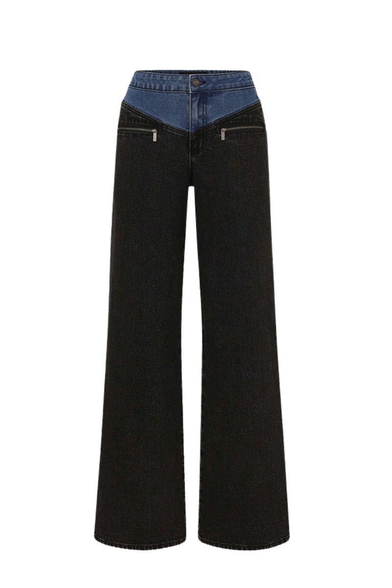 Rehaussez votre garde-robe avec ce jean. Doté d'un design bicolore sophistiqué et de poches zippées élégantes, ce jean offre un mélange polyvalent de style et de fonctionnalité. Parfait pour être assorti, il passe sans effort du jour à la nuit.