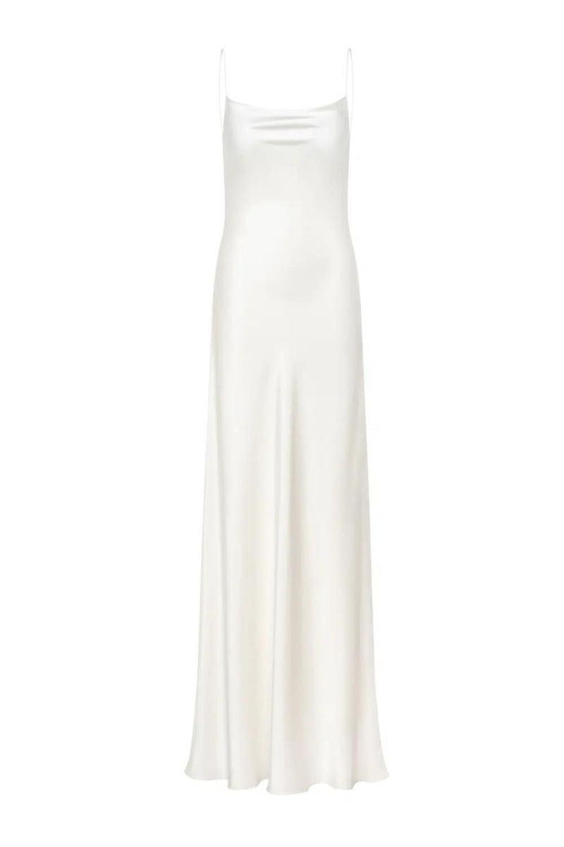 robe longue en satin de soie à col bâton petra ivoire entièrement doublée