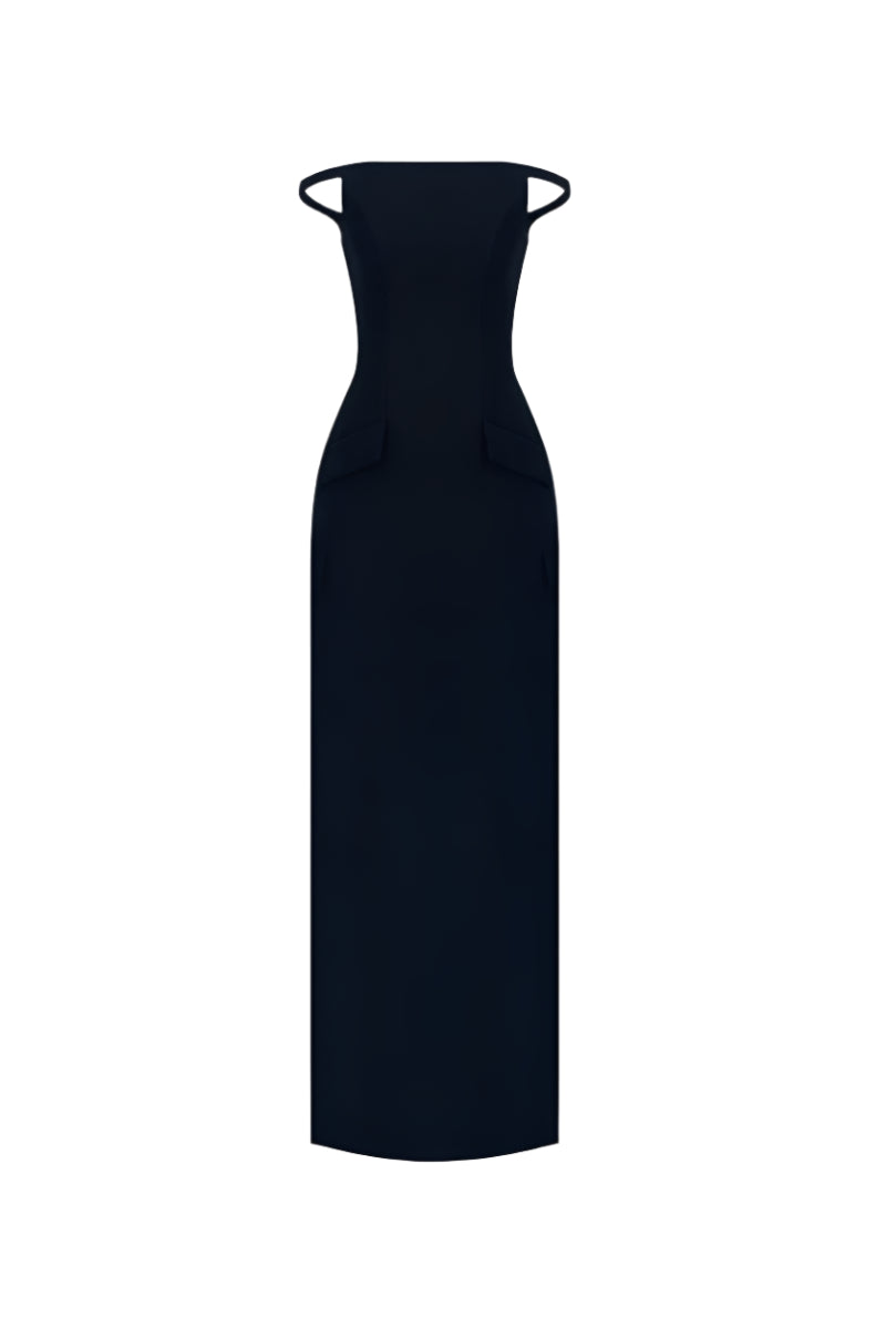 Robe longue à perles noires