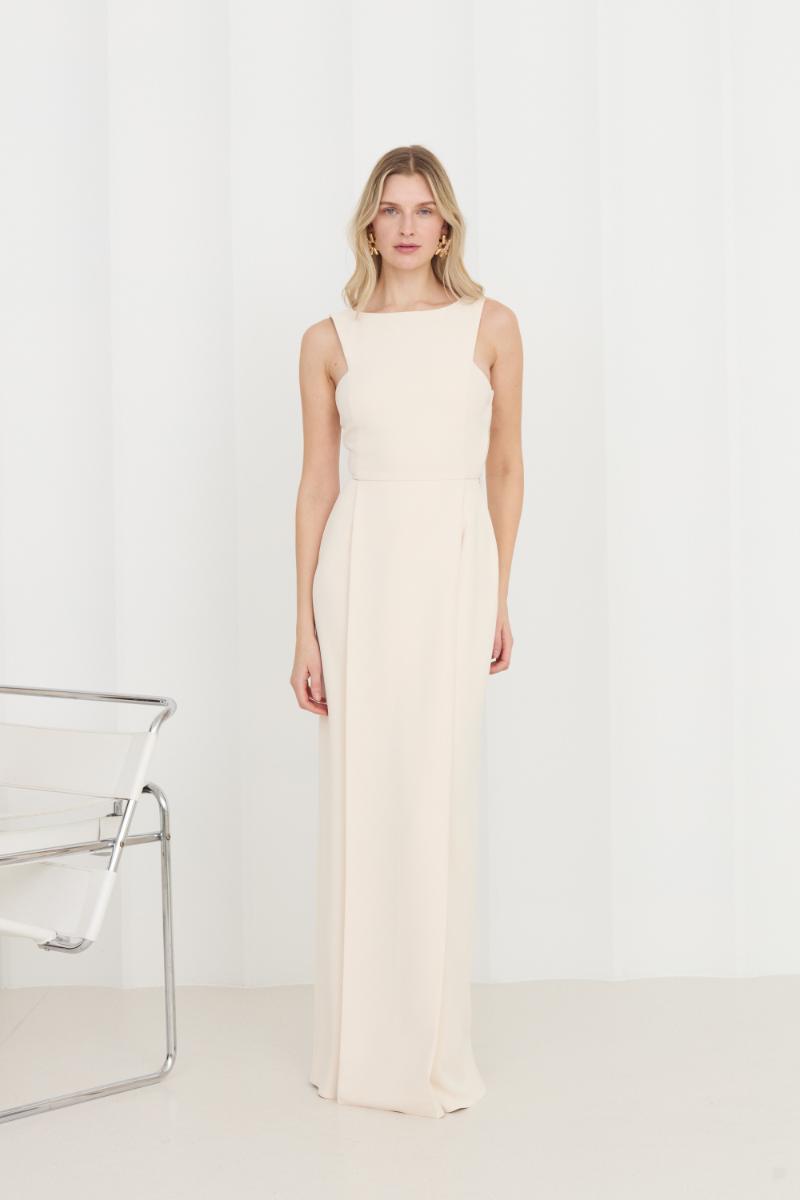 robe longue crème pastel sonora avec jupe crayon plissée