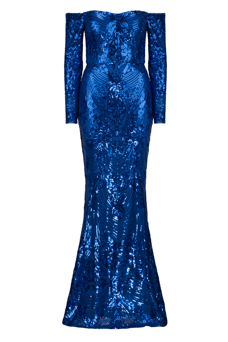 robe à paillettes à manches longues zoya en cobalt