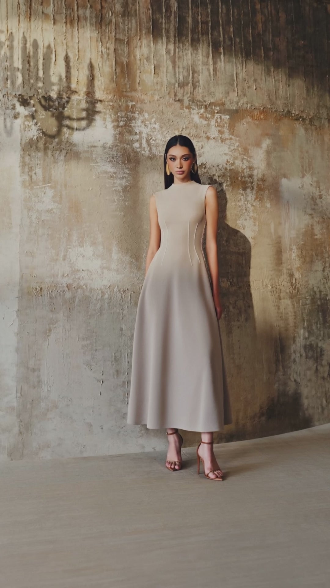 - Une robe midi évasée sans manches