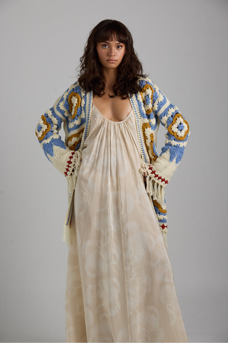 Alliant le charme bohème chic à une sophistication naturelle, ce cardigan de qualité exceptionnelle est conçu pour être chéri saison après saison, pour toujours.