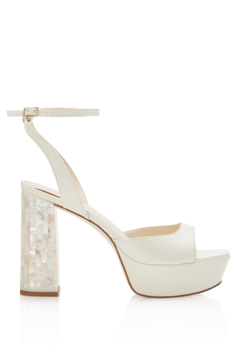 Sandales blanches à talons carrés et perles