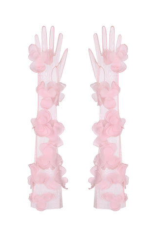 Les gants Martina sont confectionnés en tulle doux et décorés de fleurs trèfles en organza 3D, créant un look élégant et délicat grâce à leur coupe mi-longue. Ils sont disponibles en taille unique.