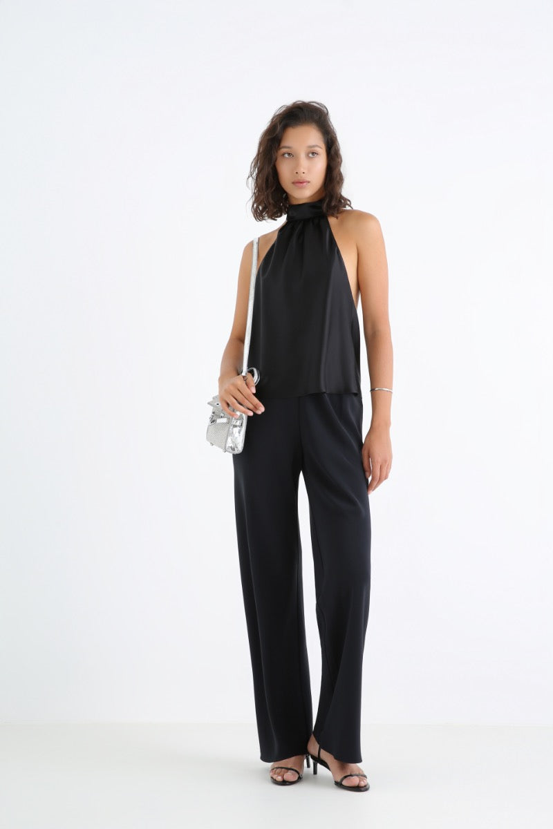 Le haut en soie Amore est taillé pour flatter la silhouette. Il présente un décolleté dos nu orné de larges liens fluides pouvant être détachés ou noués. Avec son dos nu et sa finition satinée brillante, cette pièce allie élégance et légèreté. Portez-le avec une jupe ou un pantalon taille haute pour une silhouette raffinée et féminine.