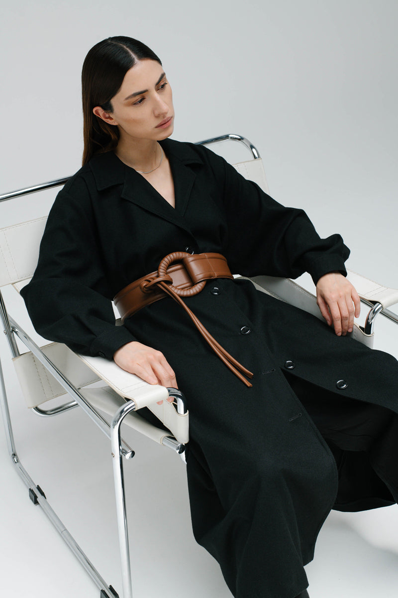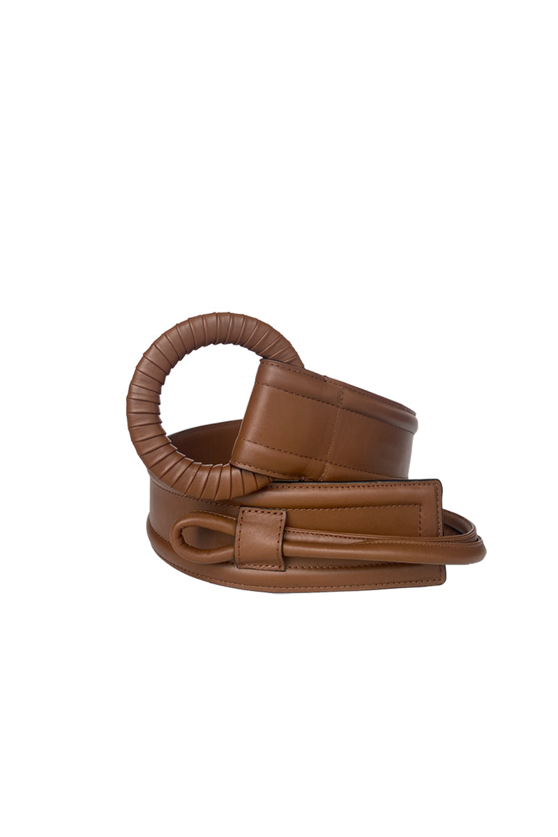 L'une de nos pièces phares de la nouvelle collection. Ceinture faite main ornée d'un anneau en cuir délicatement tressé.