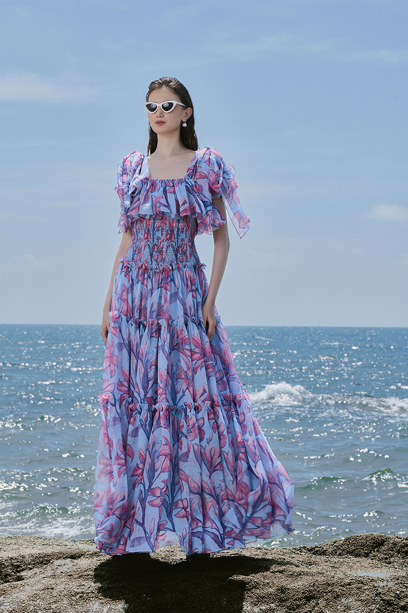 La robe longue Raiponce multicolore est un incontournable de toute garde-robe de vacances. Appréciée pour sa forme longue fluide, cette robe est confectionnée en mousseline haut de gamme et présente des détails uniques de LE THANH HOA, assurant une apparence époustouflante.