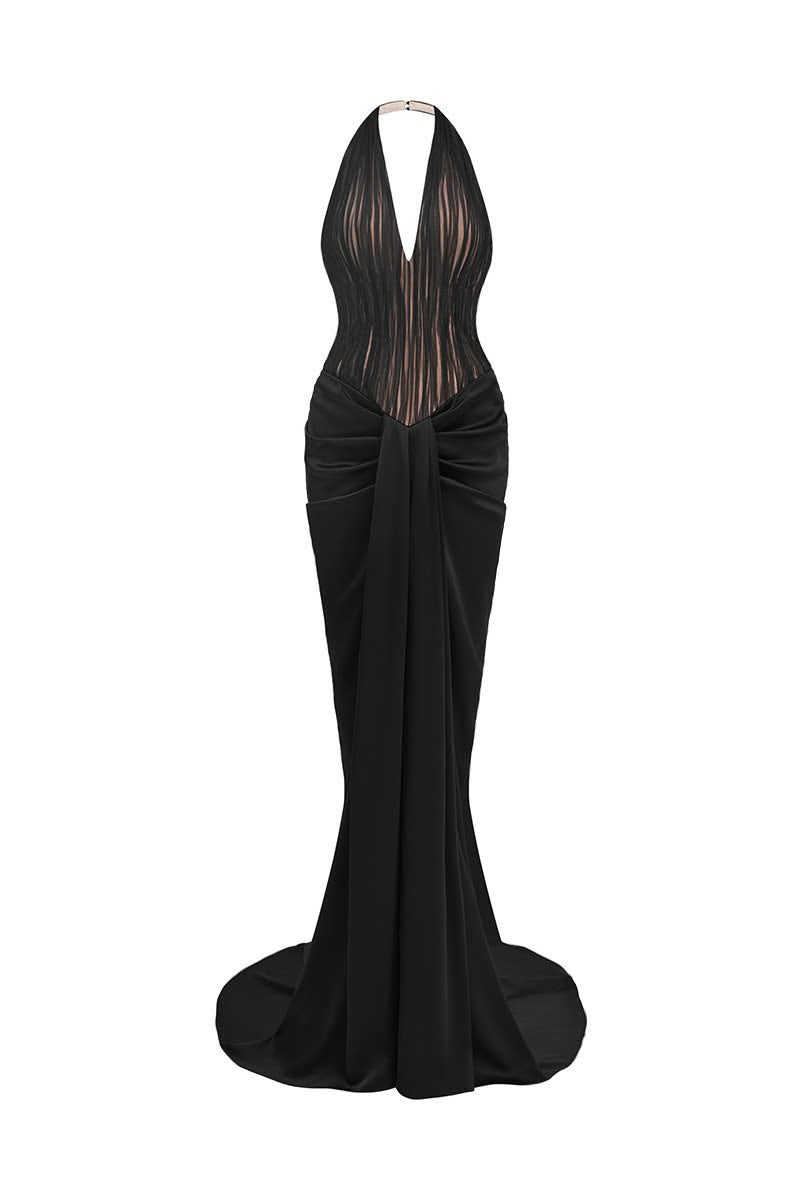 - Élégante robe noire à col licou