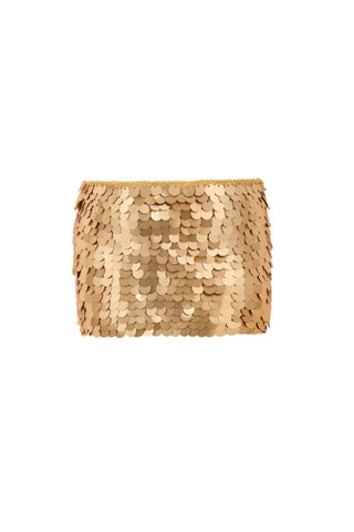 mini-jupe ornée de paillettes crochetées à la main en or mat