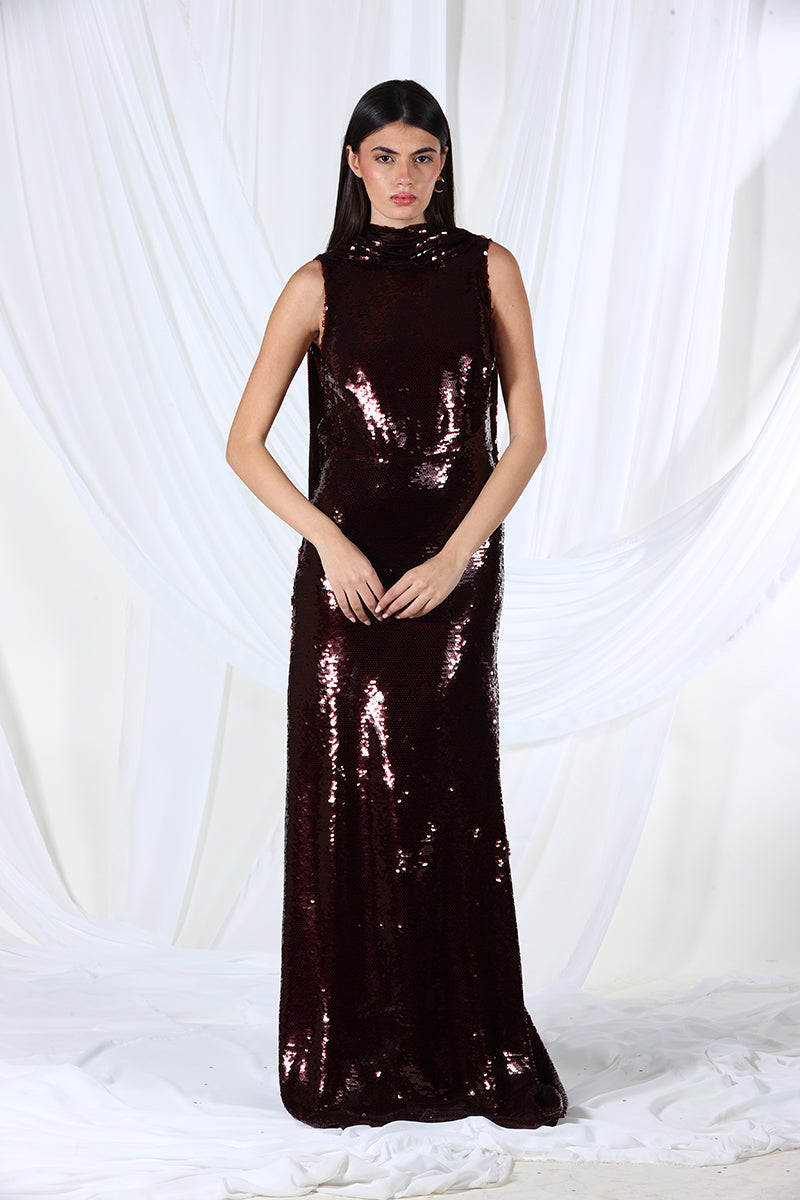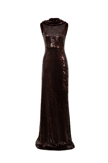 - Robe longue fluide sans manches à sequins