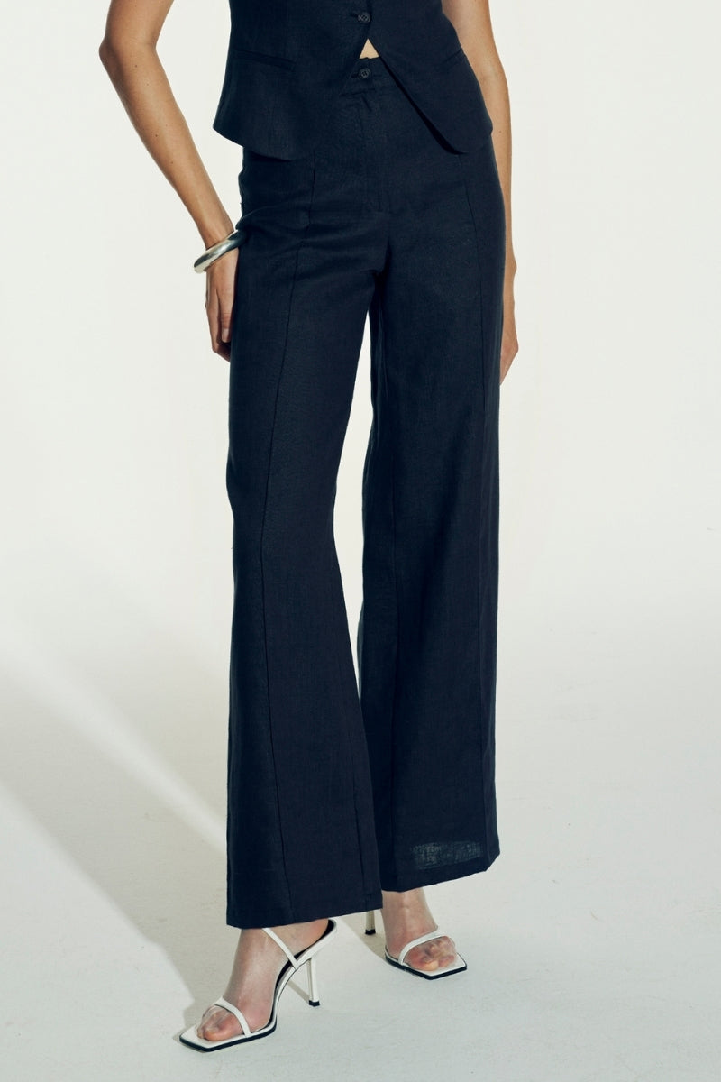 pantalon en lin millie bleu marine foncé
