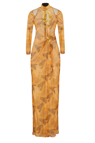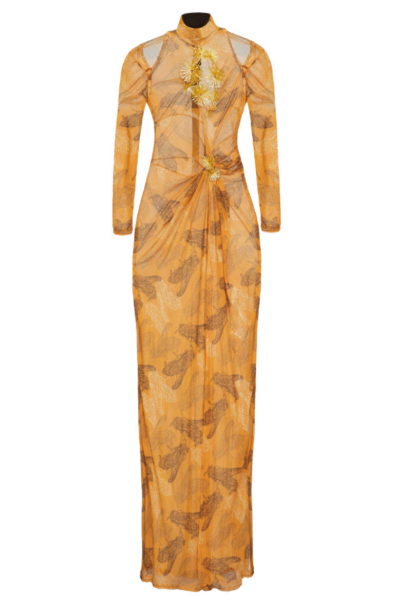 - Quincaillerie Zora Sunburst plaquée or 18 carats : ajoute une touche luxueuse le long du décolleté profond en trou de serrure.