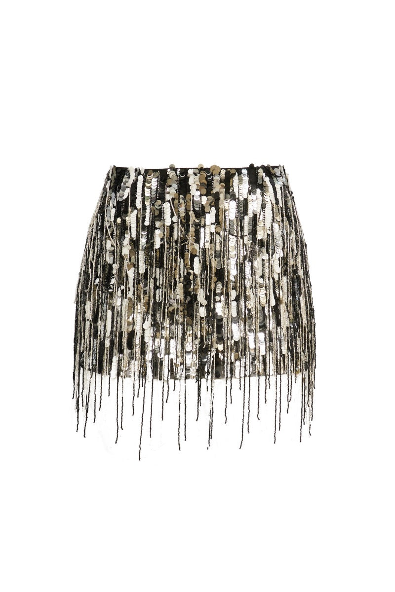 jupe à paillettes zari en noir et argent