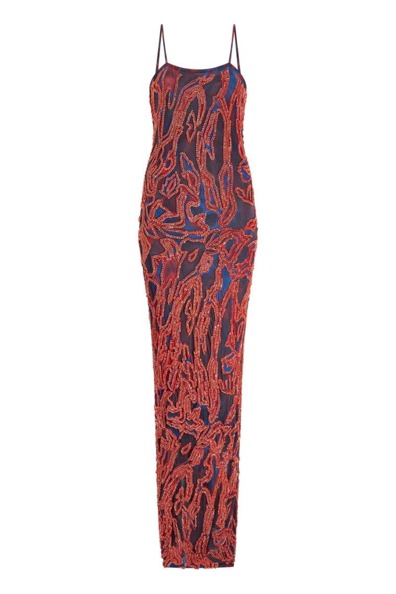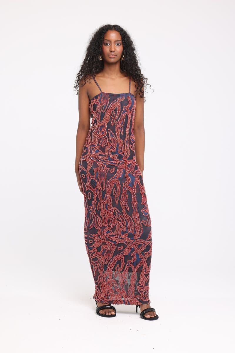 Laissez-vous tenter par l'opulence de notre robe nuisette abstraite infusée de cristaux, dotée d'une coupe élégante et ajustée. La robe est entièrement doublée et sécurisée par une fermeture éclair invisible au dos pour une élégance sans effort.
