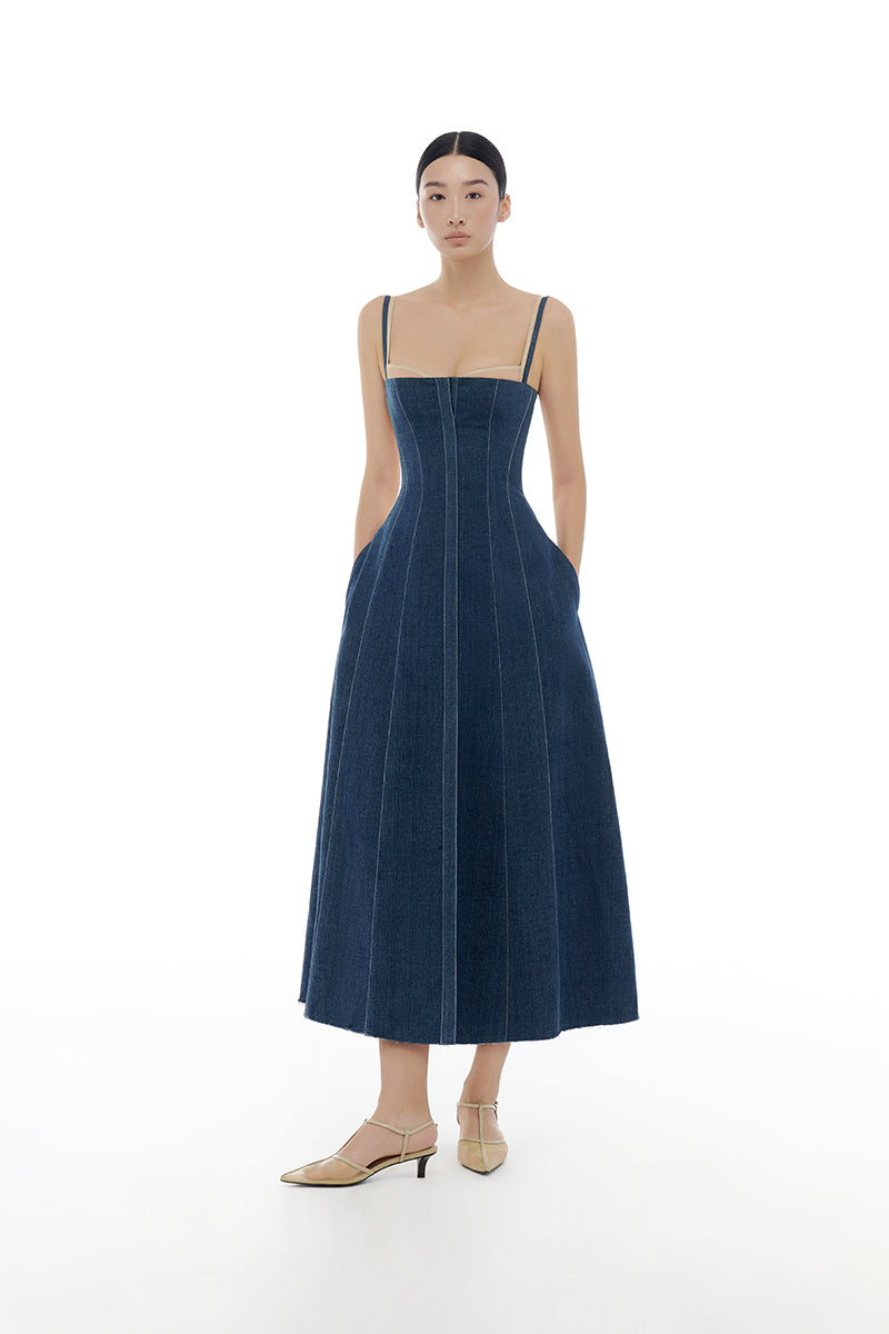 robe midi corset bleu denim