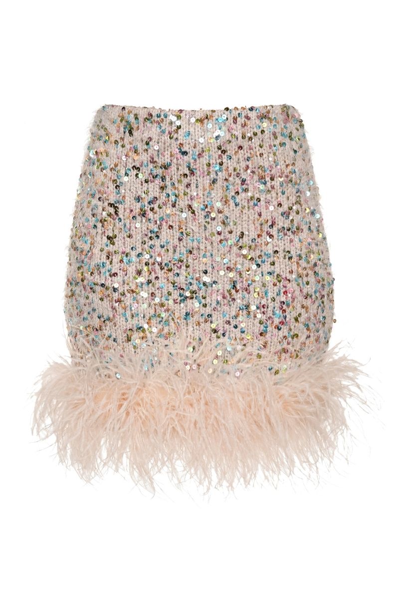 mini-jupe à plumes et nœuds multicolore