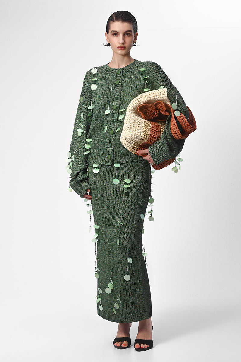 jupe tricotée à la main avec des ornements verts