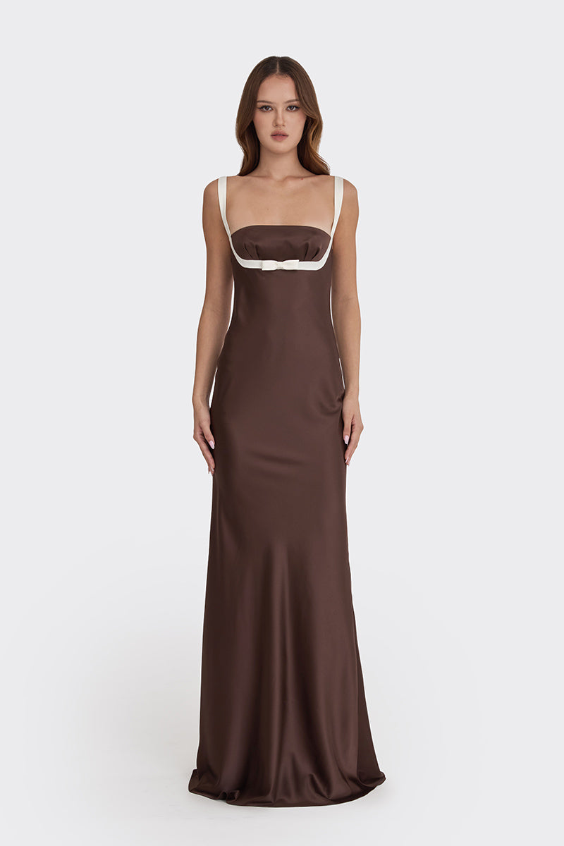 robe maxi mini nœud marron foncé