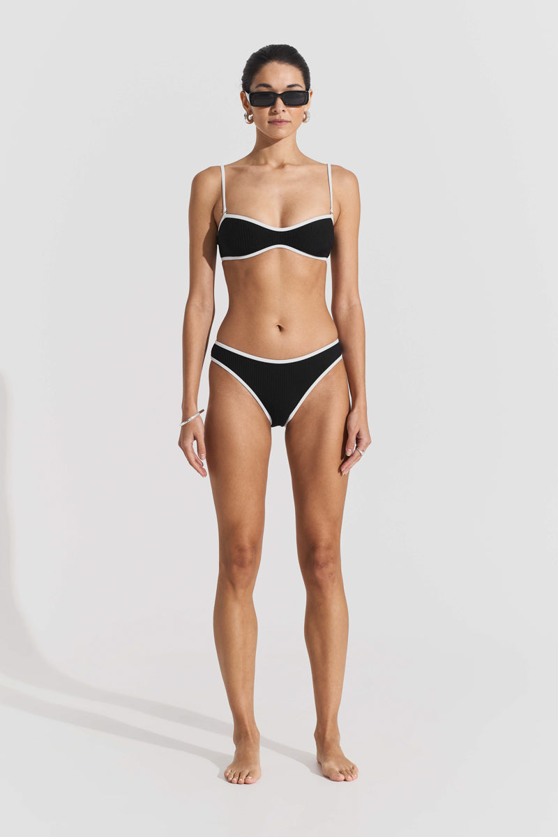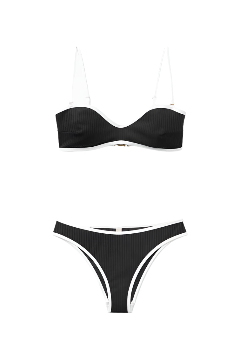 haut de bikini côtelé et bas de bikini côtelé en noir