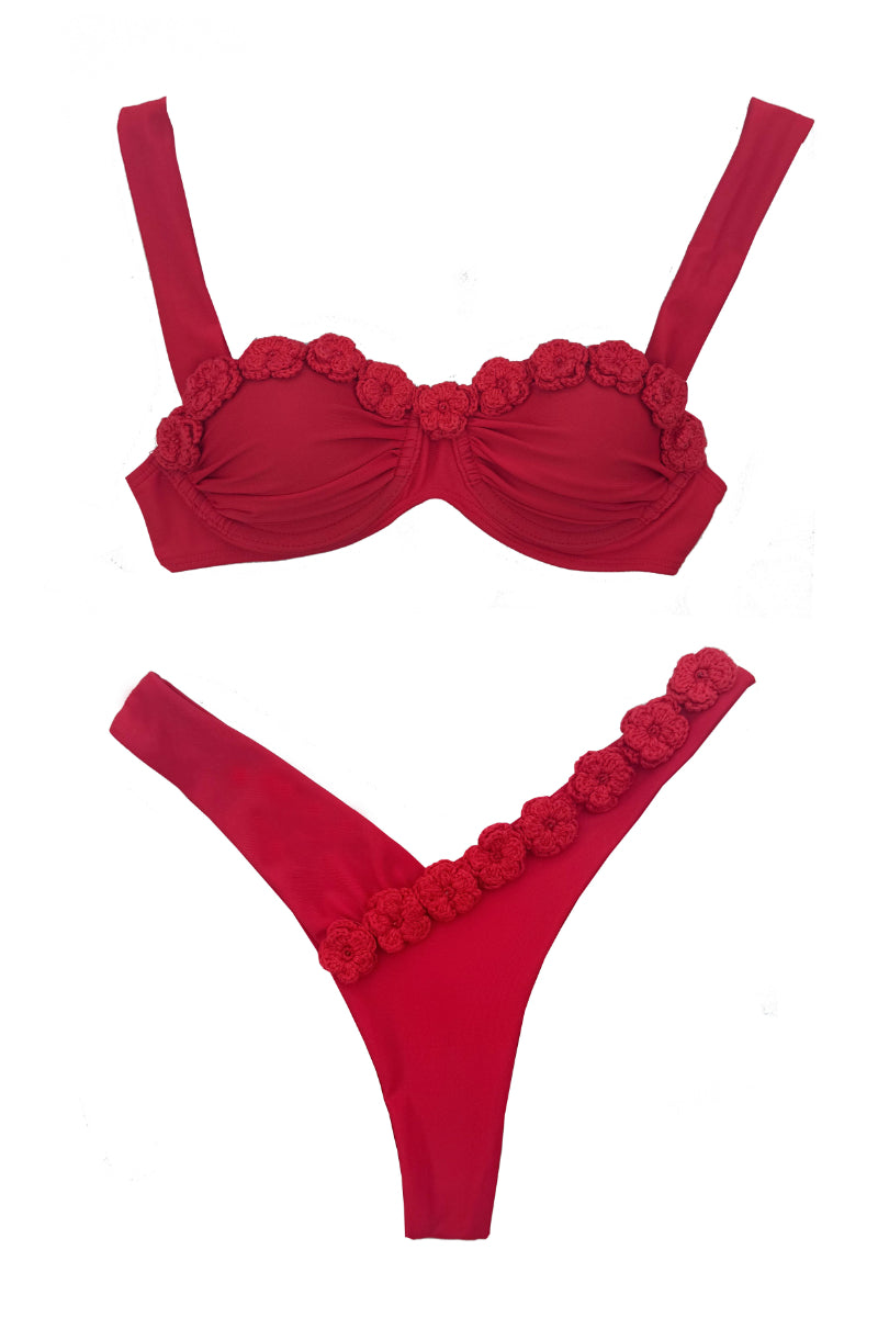 Le bikini Sa Riera incarne le charme naturel de l'une des plages les plus prisées de Begur. Ce deux-pièces est orné de délicates fleurs crochetées à la main et de perles placées individuellement, chacune réalisée par des artisans locaux en Espagne. Fabriqué à partir de matériaux issus de sources responsables, il affiche un impact environnemental réduit et s'engage pour une production plus sûre et plus responsable.