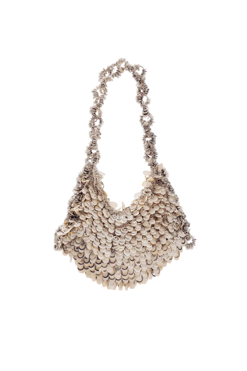 - Paillettes blanches soigneusement cousues à la main