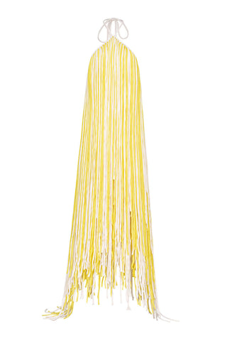 robe jaune à franges et col dos d'ail