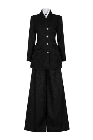 ensemble blazer ajusté à col montant et pantalon à jambe large