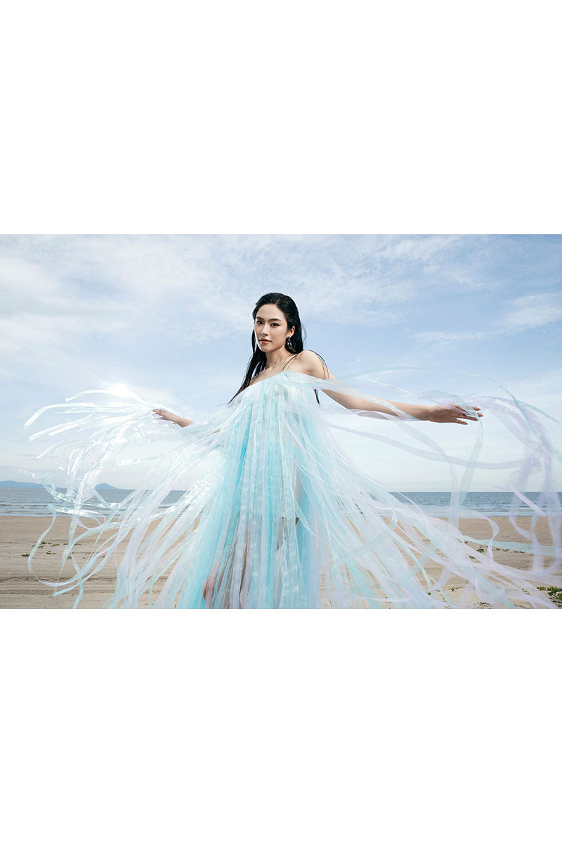 Confectionnée à partir de rubans transparents cousus à la main sur une doublure bustier moulante, cette robe crée une texture vaporeuse et frangée. Son décolleté bustier épuré laisse toute la place à une texture spectaculaire et volumineuse qui définit le style.