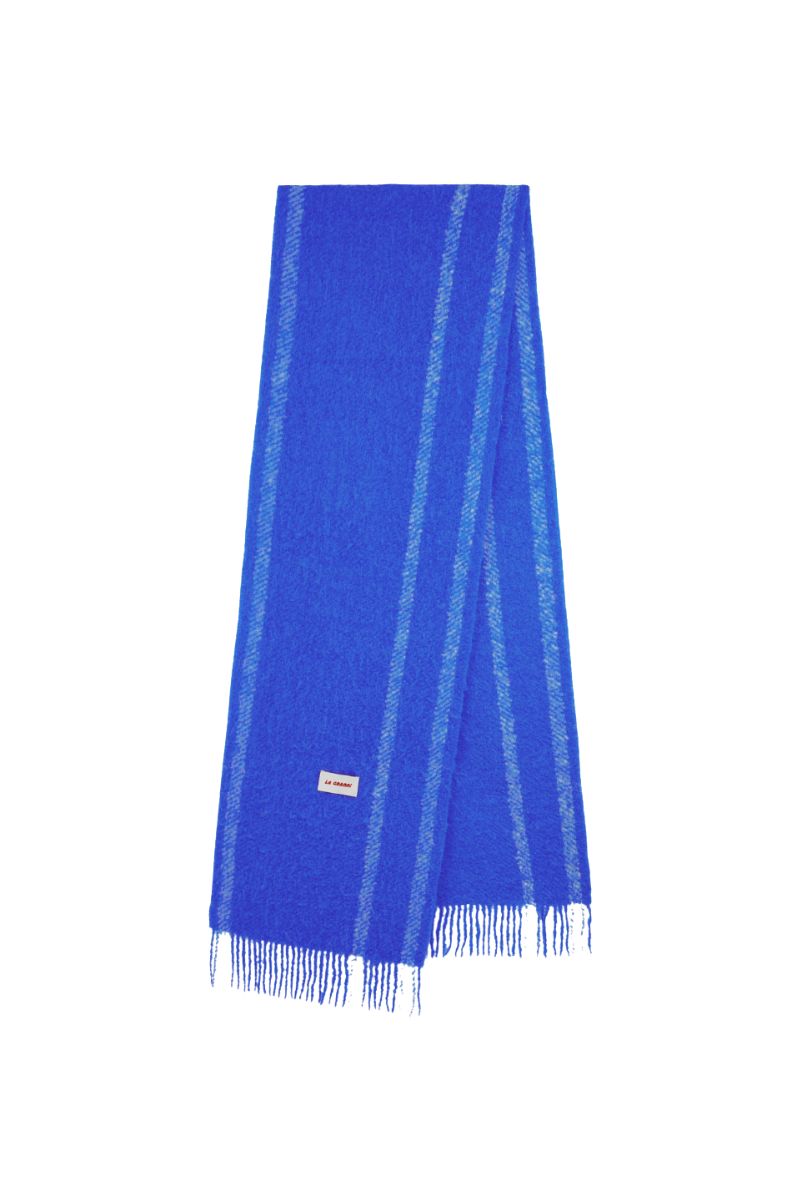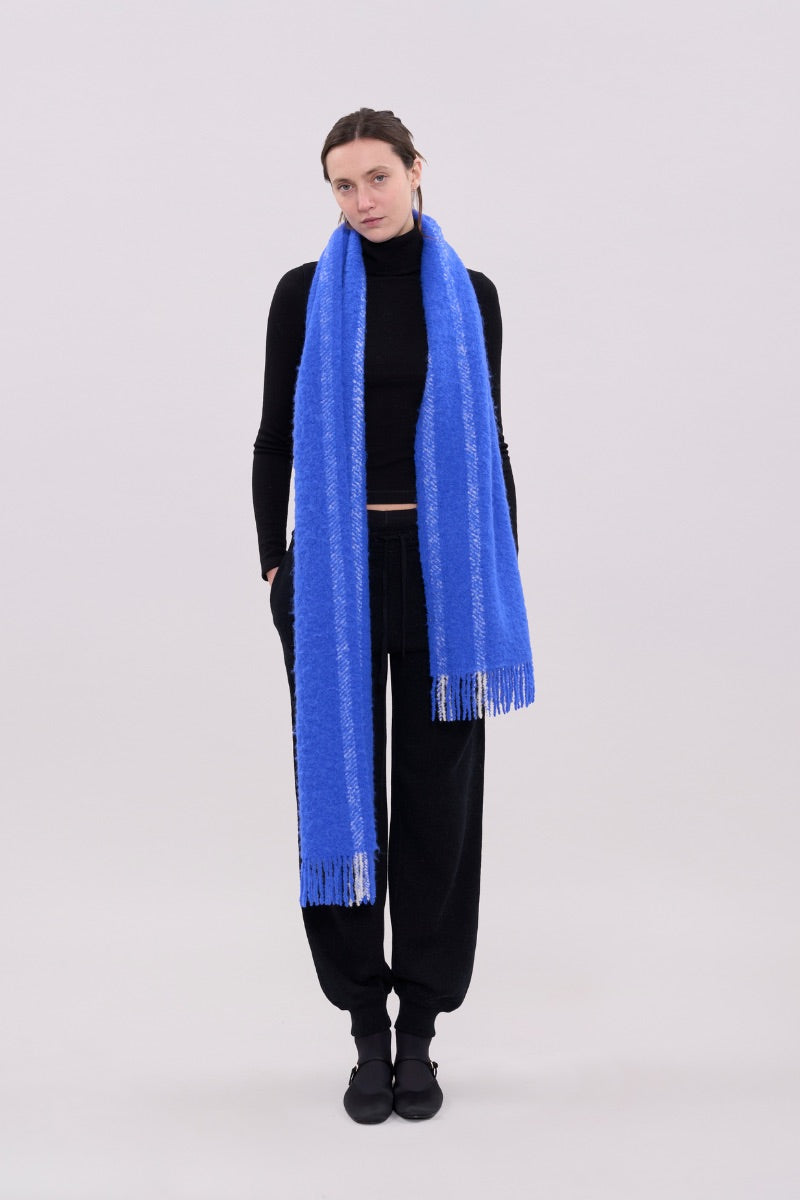 écharpe oversize en bleu et crème