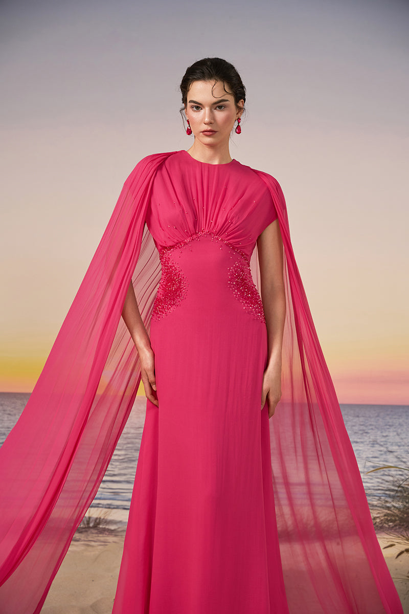 robe mira en chiffon fuchsia