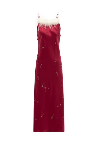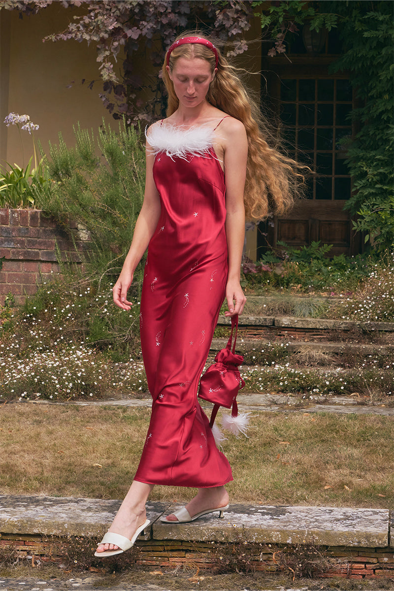 Confectionnée en soie de mûrier lisse, cette robe nuisette VEGA pour femme épouse les mouvements du corps avec élégance. De subtils ornements en cristal lui confèrent une touche de douceur et de luminosité, tandis que ses bretelles réglables et son dos élastiqué assurent un ajustement raffiné et confortable. Élégante et décontractée, elle est idéale pour les soirées chics, les moments de détente à la maison et les cadeaux attentionnés.