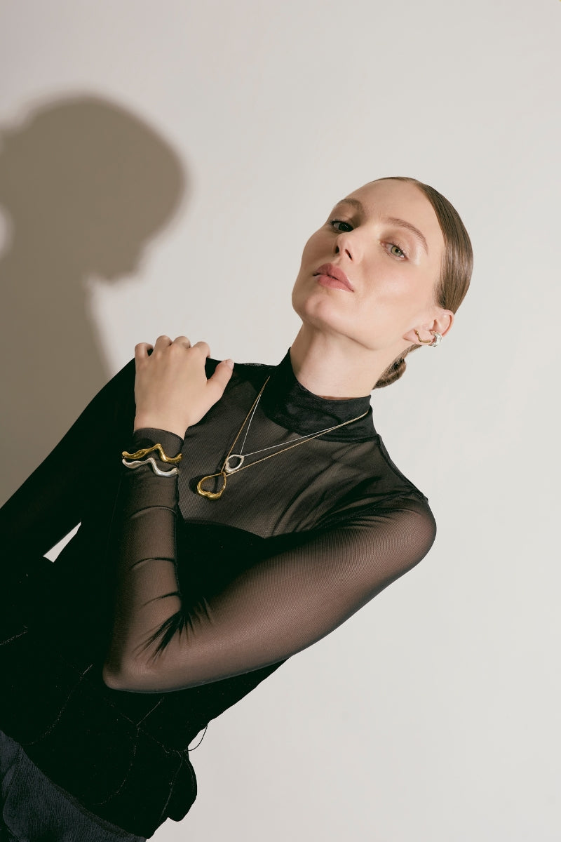 Chaque pièce est fabriquée à la main en Colombie à partir d'argent sterling recyclé, d'or 18 carats et de pierres précieuses issues de sources éthiques. L'esthétique de la marque trouve un équilibre subtil entre force et délicatesse dans chacune de ses créations intemporelles.