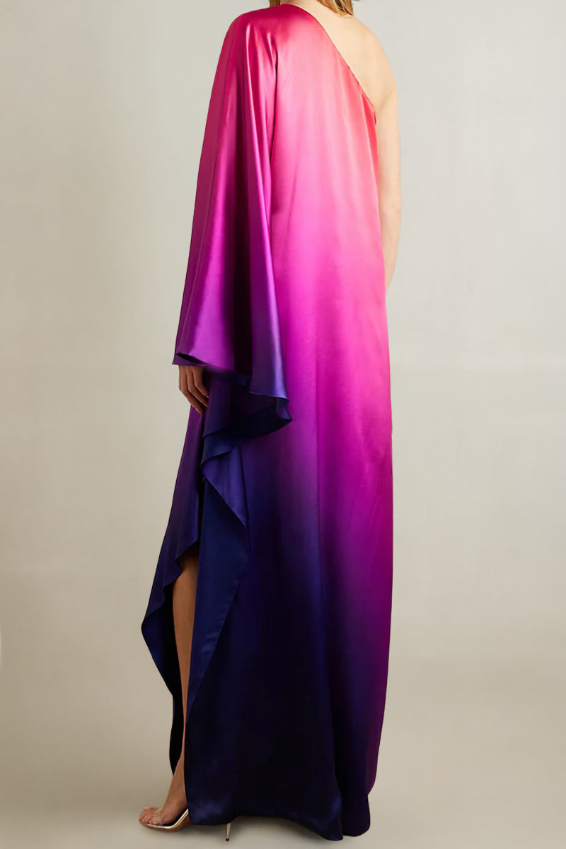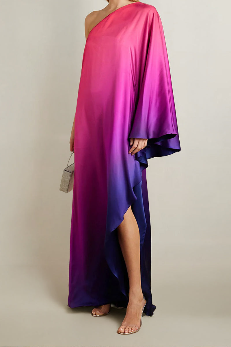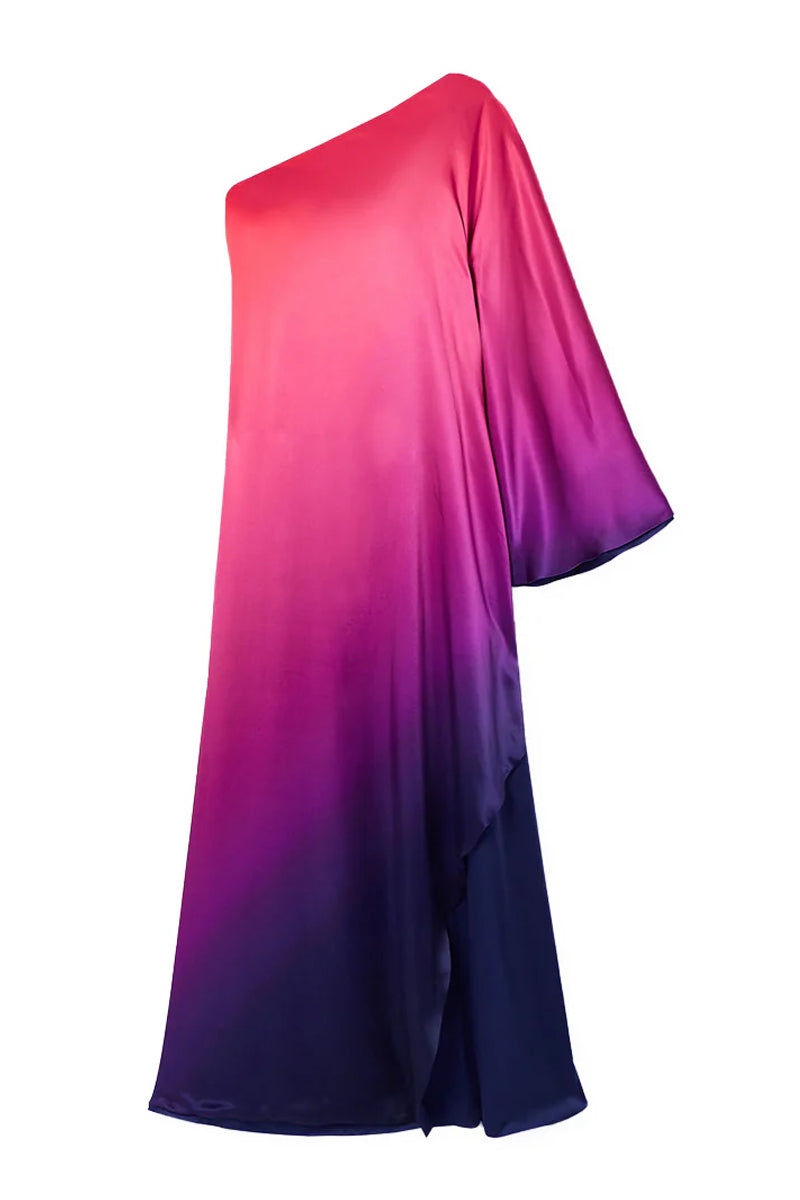 - Charmeuse de soie ombrée corail, rose, violet et bleu marine ton sur ton