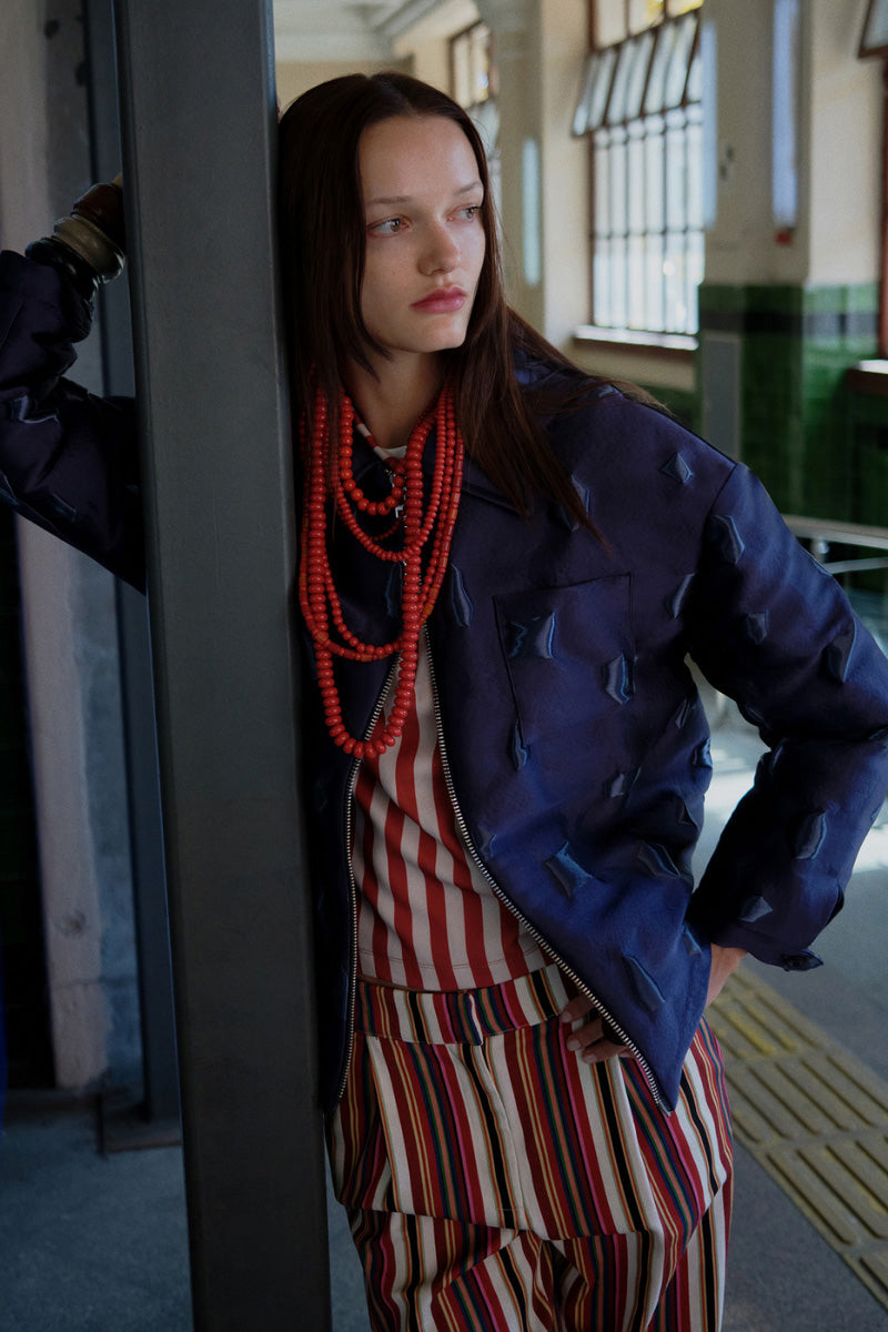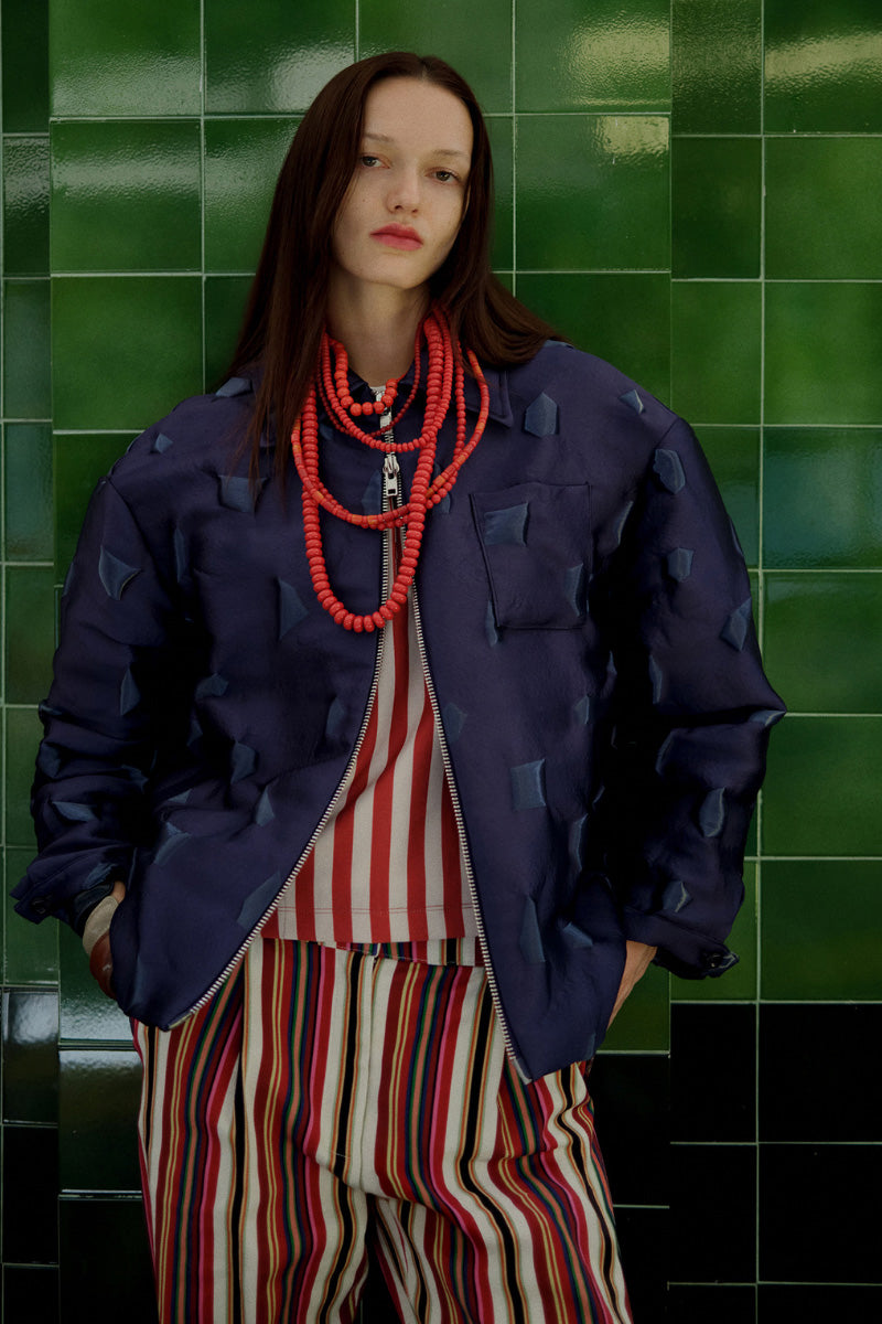 - Le col ajoute un contraste chromatique sophistiqué au vêtement.